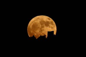 (250711) -- AMAN, 11 julio, 2025 (Xinhua) -- Imagen del 10 de julio de 2025 de la luna llena elevándose en el cielo sobre Ajloun, en el norte de Amán, Jordania. (Xinhua/Mohammad Abu Ghosh) (rtg) (ra) (vf)