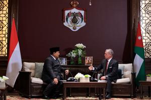 (260226) -- AMAN, 26 febrero, 2026 (Xinhua) -- Imagen del 25 de febrero de 2026 del rey Abdullah II (d), de Jordania, reuniéndose con el visitante presidente indonesio, Prabowo Subianto, en el Palacio Basman, en Amán, Jordania. El rey Abdullah II, de Jordania y el visitante presidente indonesio, Prabowo Subianto destacaron el miércoles la necesidad del diálogo para reducir las tensiones regionales, pidiendo apoyo a la soberanía de Siria y Líbano y un renovado impulso a la solución de dos Estados, de acuerdo con un comunicado de la Corte Real. (Xinhua/Mohammad Abu Ghosh) (jg) (ah) (vf)