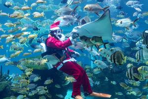 (241225) -- BALI, 25 diciembre, 2024 (Xinhua) -- Un buzo vestido como Santa Claus realiza una presentación en un restaurante acuario, en la regencia de Badung, en Bali, Indonesia, el 25 de diciembre de 2024. (Xinhua/Dicky Bisinglasi) (jg) (ra) (vf)