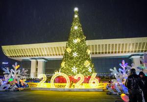 (260101) -- ALMATY, 1 enero, 2026 (Xinhua) -- Imagen del 31 de diciembre de 2025 de una instalación artística de Año Nuevo, en Almaty, Kazajistán. (Xinhua) (da) (ra) (vf)