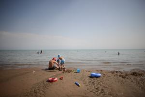 (250728) -- ALMATY, 28 julio, 2025 (Xinhua) -- Imagen del 26 de julio de 2025 de personas visitando la Reserva de Kapchagay, en Konaev, en la región de Almaty, Kazajistán. Recientemente, la parte sur de Kazajistán, incluyendo la ciudad de Almaty, la región de Almaty y la región de Kazajistán del Sur, ha sido azotada por altas olas de calor. (Xinhua/Li Renzi) (oa) (ah) (vf)