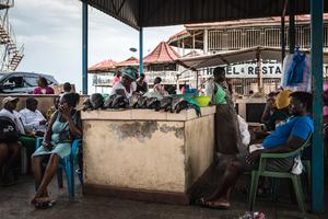 (250404) -- KISUMU, 4 abril, 2025 (Xinhua) -- Imagen del 3 de abril de 2025 de vendedores esperando por clientes en un mercado de pescado cerca del Lago Victoria, en Kisumu, Kenia. Favorecida por su ubicación junto al lago, la industria pesquera aquí se ha desarrollado continuamente y se ha convertido en una fuente importante de ingresos para los habitantes. (Xinhua/Wang Guansen) (rtg) (ra) (ce)