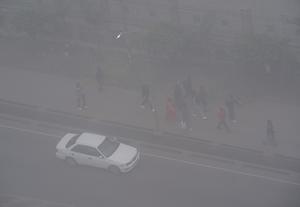 (250725) -- NAIROBI, 25 julio, 2025 (Xinhua) -- Vehículos y personas son vistas en una calle envuelta en niebla, en Nairobi, Kenia, el 25 de julio de 2025. Una densa niebla cubrió Nairobi en la mañana del viernes. (Xinhua/Han Xu) (jg) (da) (vf)