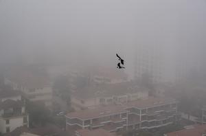 (250725) -- NAIROBI, 25 julio, 2025 (Xinhua) -- Aves vuelan sobre edificios envueltos en niebla, en Nairobi, Kenia, el 25 de julio de 2025. Una densa niebla cubrió Nairobi en la mañana del viernes. (Xinhua/Han Xu) (jg) (da) (vf)