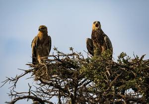(250804) -- NAIROBI, 4 agosto, 2025 (Xinhua) -- Imagen del 29 de julio de 2025 de dos águilas en la Reserva Nacional Masai Mara, en Kenia. (Xinhua/Han Xu) (oa) (ah) (vf)