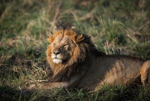 (250804) -- NAIROBI, 4 agosto, 2025 (Xinhua) -- Imagen del 30 de julio de 2025 de un león en la Reserva Nacional Masai Mara, en Kenia. (Xinhua/Han Xu) (oa) (ah) (vf)