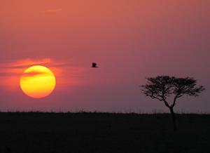 (250908) -- NAIROBI, 8 septiembre, 2025 (Xinhua) -- Imagen del 6 de septiembre de 2025 de la vista del atardecer en la Reserva Nacional Masai Mara, en Kenia. El condado de Narok, en el suroeste de Kenia, es hogar de la mundialmente famosa Reserva Nacional Masai Mara en donde los turistas acuden durante la temporada alta de turismo del país, de junio a octubre, para observar la migración de ñus. Sin embargo, más allá de los dramáticos cruces de ríos, las llanuras revelan íntimos lazos familiares y momentos tiernos, como elefantes que protegen a sus crías, leones que se acicalan mutuamente y facóqueros que deambulan con sus lechones. En conjunto, estas escenas ilustran la rica diversidad y el vibrante ritmo de vida en Masai Mara. (Xinhua/Li Yahui) (rtg) (ah) (vf)