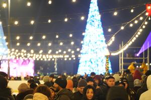(251216) -- BISHKEK, 16 diciembre, 2025 (Xinhua) -- Imagen del 15 de diciembre de 2025 de personas asistiendo a la ceremonia de encendido del árbol de Año Nuevo, en Bishkek, Kirguistán. (Xinhua/Jiang Youlin) (jg) (ra) (vf)