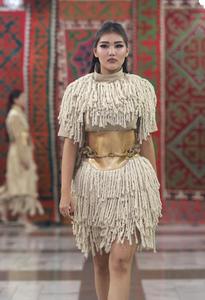 (251030) -- BISHKEK, 30 octubre, 2025 (Xinhua) -- Una modelo presenta una creación en un festival de moda nómada, en Bishkek, Kirguistán, el 30 de octubre de 2025. El evento exhibe diseños de ropa de más de 20 diseñadores de Kirguistán, Tayikistán, Kazajistán y otros países y regiones. (Xinhua/Roman) (da) (ra) (ce)