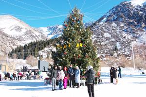 (260102) -- BISHKEK, 2 enero, 2026 (Xinhua) -- Turistas se toman fotografías en el Parque Nacional Ala-Archa, a unos 30 kilómetros de Bishkek, Kirguistán, el 2 de enero de 2026. (Xinhua/Liu Xiaowan) (jg) (ra)