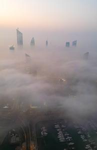 (251114) -- CIUDAD DE KUWAIT, 14 noviembre, 2025 (Xinhua) -- Vista aérea tomada con un dron el 13 de noviembre de 2025 de edificios envueltos en niebla, en la Ciudad de Kuwait, Kuwait. (Xinhua/Asad) (jg) (da)