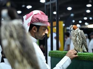 (250829) -- GOBERNACION DE HAWALLI, 29 agosto, 2025 (Xinhua) -- Imagen del 28 de agosto de 2025 de un hombre visitando una exposición de halcones de Kuwait, en la Gobernación de Hawalli, Kuwait. El evento de tres días que durará hasta el 30 de agosto, reúne exhibiciones de halcones y accesorios de cetrería. (Xinhua/Asad) (rtg) (ra) (vf)
