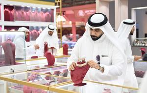 (251007) -- GOBERNACION DE HAWALLI, 7 octubre, 2025 (Xinhua) -- Un hombre muestra joyas durante la Feria Internacional de Joyería del Golfo (GIJF, por sus siglas en inglés), en la Gobernación de Hawalli, Kuwait, el 7 de octubre de 2025. La GIJF se inauguró aquí el martes y durará hasta el 12 de octubre. (Xinhua/Asad) (oa) (ah) (vf)
