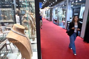 (250522) -- HAWALLI, 22 mayo, 2025 (Xinhua) -- Imagen del 21 de mayo de 2025 de una mujer visitando la 23 Exposición Internacional de Oro y Joyería, en la Gobernación de Hawalli, Kuwait. (Xinhua/Asad) (da) (ra)