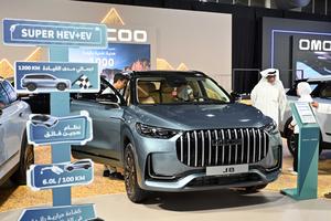 (250922) -- GOBERNACION DE HAWALLI, 22 septiembre, 2025 (Xinhua) -- Personas observan el vehículo J8 del fabricante de automóviles chino Jaecoo durante el Salón Mundial del Automóvil, en la gobernación de Hawalli, Kuwait, el 22 de septiembre de 2025. El evento de seis días de duración comenzó aquí el lunes. (Xinhua/Asad) (rtg) (ah) (ce)