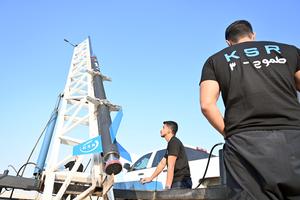 (251207) — GOBERNACION DE YAHRA, 7 diciembre, 2025 (Xinhua) — Imagen del 6 de diciembre de 2025 de miembros del equipo de Cohetes Espaciales de Kuwait preparándose para el lanzamiento del cohete «Tamouh-3», en la gobernación de Yahra, Kuwait. El equipo de Cohetes Espaciales de Kuwait informó que un pequeño cohete que intentaba lanzar el sábado por la mañana, explotó poco después de la ignición en la gobernación de Yahra, sin que se reporten lesionados. El cohete, llamado «Tamouh-3» tenía una longitud aproximada de 3,2 metros, con un impulso máximo de alrededor de 12.000 newtons. Estaba equipado con dispositivos GPS diseñados para registrar coordenadas, velocidad, altitud, aceleración y otros datos de vuelo. De acuerdo con el equipo, este fue su cuarto intento de lanzamiento. Indicó que investigará la causa de la explosión mientras continúa con sus esfuerzos de desarrollo. (Xinhua/Asad) (rtg) (da)