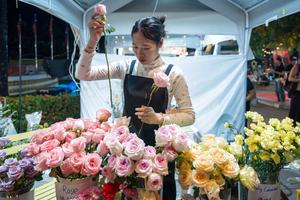 (260308) -- VIENTIAN, 8 marzo, 2026 (Xinhua) -- Imagen del 7 de marzo de 2026 de una vendedora de flores trabajando en un mercado, en Vientián, Laos. El domingo se conmemora el Día Internacional de la Mujer. (Xinhua/Kaikeo Saiyasane) (rtg) (ah)