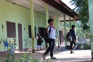 (260320) -- VIENTIAN, 20 marzo, 2026 (Xinhua) -- Estudiantes son vistos en una escuela primaria, en Vientián, Laos, el 20 de marzo de 2026. El gobierno de Laos ha ordenado ajustes en todo el país en el funcionamiento de las escuelas, reduciendo la semana escolar de cinco a tres días, como parte de las medidas de emergencia para aliviar la presión financiera sobre las familias en medio de la continua volatilidad de los precios del combustible. (Xinhua/Sengmany Xingvang) (rtg) (ra) (vf)