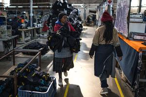 (250730) -- MASERU, 30 julio, 2025 (Xinhua) -- Imagen del 29 de julio de 2025 de una trabajadora entregando ropa en la fábrica textil Afri-Expo, en Maseru, capital de Lesoto. Lesoto es un pequeño país del sur de Africa y uno de los países menos desarrollados del mundo. Su economía depende en gran medida de las exportaciones textiles. Exporta más del 50 por ciento de sus productos de confección a Estados Unidos. (Xinhua/Wang Guansen) (jg) (da) (ce)