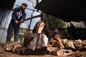 (250221) -- AKKAR, 21 febrero, 2025 (Xinhua) -- Imagen del 19 de febrero de 2025 de un joven cortando leña en preparación para una tormenta que se aproxima, en Akkar, Líbano. (Xinhua/Khaled Habashiti) (oa) (ra) (vf)