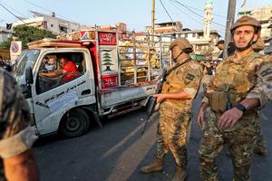 (250821) -- BEIRUT, 21 agosto, 2025 (Xinhua) -- Miembros del Ejército libanés escoltan un camión que transporta armas entregadas por los campamentos palestinos en el campamento de Burj Barajneh, en Beirut, Líbano, el 21 de agosto de 2025. Líbano inició el jueves la transferencia de armas desde los campamentos palestinos en el país al Ejército libanés en el campamento de Burj Barajneh, según Ramez Dimechkie, jefe del Comité de Diálogo Libanés-Palestino. (Xinhua/Bilal Jawich) (da) (ra) (vf)
