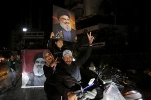 (260417) -- BEIRUT, 17 abril, 2026 (Xinhua) -- Imagen del 16 de abril de 2026 de personas desplazadas que sostienen imágenes del fallecido líder de Hizbulá, Sayyed Hassan Nasrallah, regresando al suburbio del sur de Beirut, Líbano. Un cese al fuego de 10 días entre Israel y Líbano entró en vigor a la medianoche hora local entre el jueves y el viernes (21:00 GMT), luego de un anuncio hecho anteriormente por el presidente de Estados Unidos, Donald Trump. (Xinhua/Bilal Jawich) (jg) (ra) (ce)