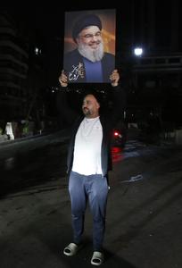 (260417) -- BEIRUT, 17 abril, 2026 (Xinhua) -- Imagen del 16 de abril de 2026 de un hombre desplazado que sostiene una imagen del fallecido líder de Hizbulá, Sayyed Hassan Nasrallah, regresando al suburbio del sur de Beirut, Líbano. Un cese al fuego de 10 días entre Israel y Líbano entró en vigor a la medianoche hora local entre el jueves y el viernes (21:00 GMT), luego de un anuncio hecho anteriormente por el presidente de Estados Unidos, Donald Trump. (Xinhua/Bilal Jawich) (jg) (ra) (ce)