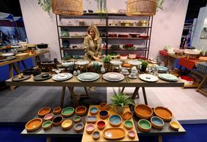 (250409) -- BEIRUT, 9 abril, 2025 (Xinhua) -- Imagen del 8 de abril de 2025 de una expositora preparando exhibiciones de vajilla en la 29 edición de la HORECA Líbano, en Beirut, Líbano. El evento de cuatro días comenzó aquí el martes para mostrar los últimos desarrollos de las industrias de alimentos, bebidas y catering del país. (Xinhua/Bilal Jawich) (ah) (ra) (vf)