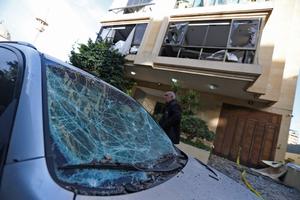 (260401) -- JNAH, 1 abril, 2026 (Xinhua) -- Imagen del 1 de abril de 2026 de un edificio y un vehículo dañados en ataques israelíes, en la zona de Jnah de Beirut, Líbano. Un ataque naval israelí tuvo como objetivo un convoy de vehículos en la zona de Jnah, en Beirut, la noche del martes, incendiando varios automóviles y provocando fuertes explosiones que se escucharon en toda la capital y sus suburbios, informó la Agencia Nacional de Noticias del Líbano. (Xinhua/Bilal Jawich) (ah) (ra) (vf)