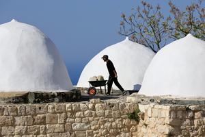 (251120) -- CHAMAA, 20 noviembre, 2025 (Xinhua) -- Imagen del 19 de noviembre de 2025 de un trabajador laborando durante el proceso de restauración del santuario del profeta Shimon al-Safa destruido por las fuerzas israelíes durante los combates con Hizbulá, en Chamaa, en el sur de Líbano. El santuario del profeta Shimon al-Safa es un monumento religioso histórico en el sur de Líbano, que sirve como lugar de culto y de gran importancia cultural para la comunidad local. (Xinhua/Ali Hashisho) (jg) (ah) (ce)