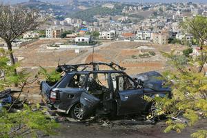 (251103) -- BEIRUT, 3 noviembre, 2025 (Xinhua) -- Imagen del 2 de noviembre de 2025 de los restos de un automóvil bombardeado por un dron israelí, en Kfar Roummane, en el sur de Líbano. Cuatro personas murieron y otras tres resultaron heridas la noche del sábado en un ataque aéreo israelí contra la aldea libanesa de Kfar Roummane, en el sur del país, según informó el Centro de Operaciones de Emergencias de Salud Pública de Líbano. (Xinhua/Ali Hashisho) (rtg) (ah) (ce)