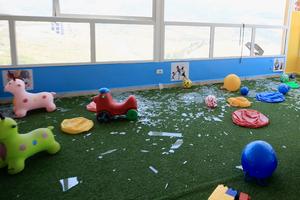 (250509) -- NABATIEH, 9 mayo, 2025 (Xinhua) -- Imagen del 8 de mayo de 2025 de ventanas rotas en un edificio después de un ataque aéreo israelí, en Kfar Tebnit, Alto Nabatieh, Líbano. Aviones de guerra israelíes llevaron a cabo una serie de intensos ataques aéreos el jueves en las afueras de la ciudad de Nabatieh, en el sur del Líbano, según fuentes oficiales y de seguridad. Los aviones de guerra israelíes realizaron dos oleadas de violentos ataques contra valles, tierras altas y zonas boscosas entre la aldea de Kfar Tebnit, Alto Nabatieh, y la ciudad de Kfar Remen, según informó la Agencia Nacional de Noticias de Líbano. (Xinhua/Ali Hashisho) (rtg) (ra) (vf)