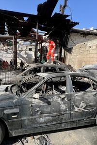 (251119) -- SIDON, 19 noviembre, 2025 (Xinhua) -- Un rescatista inspecciona vehículos destruidos en un ataque aéreo israelí, en el campamento de refugiados Ain al-Hilweh, en Sidón, Líbano, el 19 de noviembre de 2025. Al menos 13 personas murieron y varias más resultaron heridas la noche del martes en un ataque aéreo israelí contra el campamento de refugiados Ain al-Hilweh, en la ciudad de Sidón, en el sur de Líbano, informó el Ministerio de Salud de Líbano. (Xinhua/Ali Hashisho) (ah) (ra) (ce)