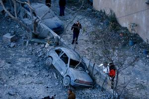 (260304) -- SIDON, 4 marzo, 2026 (Xinhua) -- Imagen del 3 de marzo de 2026 de personas revisando vehículos dañados en el sitio de las oficinas del Grupo Islámico destruidas por los ataques aéreos israelíes, en Sidón, en el sur de Líbano. (Xinhua/Ali Hashisho) (ah) (ra) (vf)