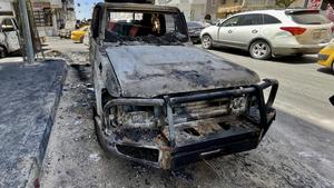 (250513) -- TRIPOLI, 13 mayo, 2025 (Xinhua) -- Imagen del 13 de mayo de 2025 de un coche dañado durante los enfrentamientos violentos en una calle, en Trípoli, Libia. Los enfrentamientos violentos durante la noche en la capital libia, Trípoli, causaron la muerte de al menos seis personas, informó un servicio médico de emergencia el martes. El Ministerio del Interior confirmó que la situación de seguridad en Trípoli es "segura y estable", y que todos los servicios de seguridad están "cumpliendo eficazmente con sus obligaciones para mantener la seguridad y el orden público." (Xinhua/Hamza Turkia) (oa) (ah) (vf)