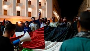 (251002) — TRIPOLI, 2 octubre, 2025 (Xinhua) — Imagen del 1 de octubre de 2025 de personas reuniéndose para apoyar a la Flotilla Global Sumud (GSF, por sus siglas en inglés), en el centro de Trípoli, Libia. Varias embarcaciones de la GSF fueron detenidas en el mar Mediterráneo mientras se acercaban a las costas de Gaza y sus pasajeros fueron trasladados a un puerto israelí, indicó la noche del miércoles el Ministerio de Relaciones Exteriores de Israel. (Xinhua/Hazem Turkia) (jg) (ah) (ce)