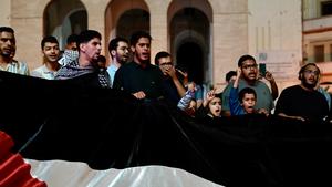 (251002) -- TRIPOLI, 2 octubre, 2025 (Xinhua) -- Imagen del 1 de octubre de 2025 de personas reuniéndose para apoyar a la Flotilla Global Sumud (GSF, por sus siglas en inglés), en el centro de Trípoli, Libia. Varias embarcaciones de la GSF fueron detenidas en el mar Mediterráneo mientras se acercaban a las costas de Gaza y sus pasajeros fueron trasladados a un puerto israelí, indicó la noche del miércoles el Ministerio de Relaciones Exteriores de Israel. (Xinhua/Hazem Turkia) (jg) (ah) (ce)