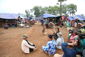 (250727) -- ODDAR MEANCHEY, 27 julio, 2025 (Xinhua) -- Imagen del 26 de julio de 2025 de evacuados camboyanos del conflicto fronterizo entre Camboya y Tailandia reuniéndose en un refugio, en la provincia de Oddar Meanchey, Camboya. Alrededor de 80.000 aldeanos camboyanos han huido de sus hogares en busca de refugio seguro, ya que los enfrentamientos armados entre soldados camboyanos y tailandeses por las zonas fronterizas en disputa han entrado en su cuarto día, informó el domingo un portavoz del Ministerio de Defensa. (Xinhua/Sao Khuth) (oa) (ah)
