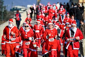 (251228) -- SKOPIE, 28 diciembre, 2025 (Xinhua) -- Personas disfrazadas de Santa Claus participan en la tradicional carrera de Santa Claus, en Skopie, Macedonia del Norte, el 28 de diciembre de 2025. (Xinhua/Tomislav Georgiev) (oa) (ah)