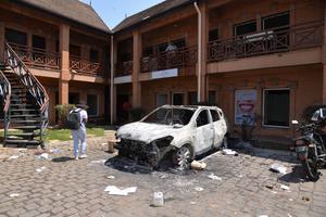 (250926) -- ANTANANARIVO, 26 septiembre, 2025 (Xinhua) -- Un automóvil dañado es visto en el distrito comercial de Antananarivo, capital de Madagascar, el 26 de septiembre de 2025. Andry Rajoelina, presidente de Madagascar, condenó el viernes los incidentes violentos ocurridos el día anterior, particularmente en la capital Antananarivo, al tiempo que instó a todo el pueblo malgache a mantener la calma. (Xinhua/Sitraka Rajaonarison) (jg) (rtg) (vf)