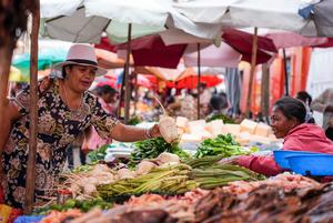 (250402) -- ANTANANARIVO, 2 abril, 2025 (Xinhua) -- Imagen del 28 de marzo de 2025 de una clienta comprando verduras en el mercado de Analakely, en Antananarivo, capital de Madagascar. Ubicado en el corazón de Antananarivo, la capital de Madagascar, el mercado de Analakely sigue latiendo con la vibrante energía de la vida urbana. Más allá de servir como destino tanto para los lugareños como para los visitantes, el mercado es un testimonio vivo de la historia y el patrimonio cultural de Antananarivo, reflejando la vida de mercado tradicional de la ciudad. (Xinhua/Li Yahui) (jg) (da) (vf)