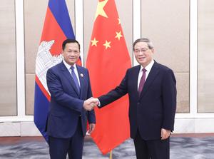 (250527) -- KUALA LUMPUR, 27 mayo, 2025 (Xinhua) -- El primer ministro chino, Li Qiang, se reúne con el primer ministro camboyano, Hun Manet, al margen de la Cumbre ASEAN (Asociación de Naciones del Sudeste Asiático)-GCC (Consejo de Cooperación del Golfo)-China, en Kuala Lumpur, Malasia, el 27 de mayo de 2025. (Xinhua/Pang Xinglei) (jg) (ra) (ce)