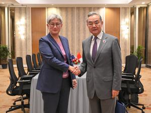 (250711) -- KUALA LUMPUR, 11 julio, 2025 (Xinhua) -- El ministro de Relaciones Exteriores chino, Wang Yi, también miembro del Buró Político del Comité Central del Partido Comunista de China, se reúne con la ministra de Relaciones Exteriores de Australia, Penny Wong, en Kuala Lumpur, Malasia, el 11 de julio de 2025. (Xinhua/Chong Voon Chung) (jg) (da) (ce)