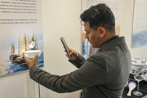 (250511) — RABAT, 11 mayo, 2025 (Xinhua) — Imagen del 9 de mayo de 2025 de un visitante marroquí tomando fotografías de un recipiente de porcelana proveniente de Jingdezhen, de la provincia de Jiangxi de China, durante el «Té para Armonía: Salón Cultural Yaji», en Rabat, Marruecos. Un evento de promoción de cultura y turismo de la provincia de Jiangxi, en el este de China, se llevó a cabo aquí el viernes para mostrar la elegancia y sabor del té chino y el encanto cultural de Jiangxi al público marroquí. (Xinhua/Huo Jing) (rtg) (da)