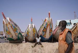 (250720) -- NOUAKCHOTT, 20 julio, 2025 (Xinhua) -- Imagen del 14 de julio de 2025 de pescadores vistos en un puerto pesquero, en Nouakchott, Mauritania. Nouakchott, al borde del desierto del Sahara, es la capital de Mauritania y su centro político, económico y cultural. (Xinhua/Han Xu) (oa) (da)