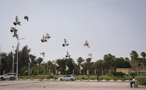 (250720) -- NOUAKCHOTT, 20 julio, 2025 (Xinhua) -- Imagen del 14 de julio de 2025 de palomas sobrevolando el Parque de la Libertad, en Nouakchott, Mauritania. Nouakchott, al borde del desierto del Sahara, es la capital de Mauritania y su centro político, económico y cultural. (Xinhua/Han Xu) (oa) (da)