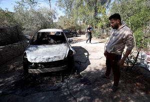 (250524) -- BURQIN, 24 mayo, 2025 (Xinhua) -- Imagen del 23 de mayo de 2025 de un palestino inspeccionando un vehículo quemado por colonos israelíes, en la aldea de Burqin, cerca de la ciudad cisjordana de Salfit. Aproximadamente 40 colonos israelíes se amotinaron en la aldea de Burqin en Cisjordania, quemando viviendas y vehículos, informó el viernes el canal de televisión estatal israelí Kan TV News. (Xinhua/Ayman Nobani) (oa) (da)