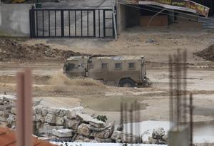 (250210) -- TULKARM, 10 febrero, 2025 (Xinhua) -- Imagen del 9 de febrero de 2025 de un vehículo militar israelí visto durante una incursión militar, en el campamento de Nur Shams, en el norte de Cisjordania. Al menos dos palestinos, entre ellos una mujer embarazada, fueron asesinados por el Ejército israelí en el campamento de refugiados de Nur Shams, en el norte de Cisjordania, dijo el domingo el Ministerio de Salud con sede en Ramallah. (Xinhua/Nidal Eshtayeh) (oa) (ah) (vf)
