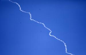 (260302) -- HEBRON, 2 marzo, 2026 (Xinhua) -- Un rastro dejado por un proyectil en el cielo es visto desde la sureña ciudad cisjordana de Hebrón, el 2 de marzo de 2026. (Xinhua/Mamoun Wazwaz) (ah) (rtg) (ce)