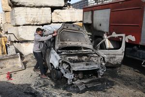 (260121) -- NAPLUSA, 21 enero, 2026 (Xinhua) -- Un palestino inspecciona las secuelas de un incendio provocado por colonos israelíes que dañó vehículos, en la aldea de Awarta, en el sur de Naplusa, en Cisjordania, el 21 de enero de 2026. (Xinhua/Nidal Eshtayeh) (ah) (ra) (vf)